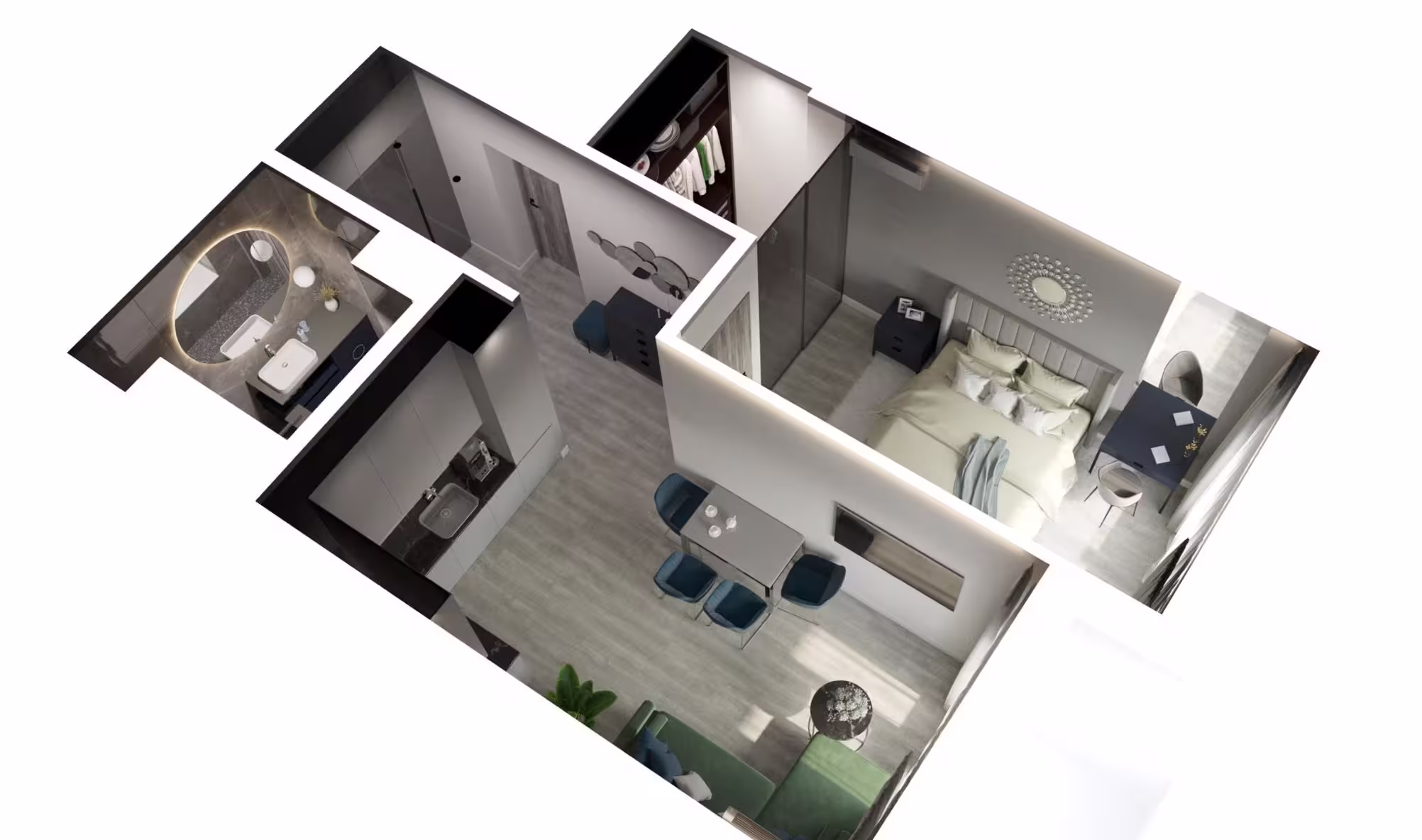 The material palette combines raw concrete, warm timber, and transparent glass to achieve a balanced modern look that feels welcoming and timeless. Subtle contrasts in textures and carefully detailed built-in furniture add layers of visual interest without cluttering the space. Every design decision, from orientation to interior finishes, supports a healthy.